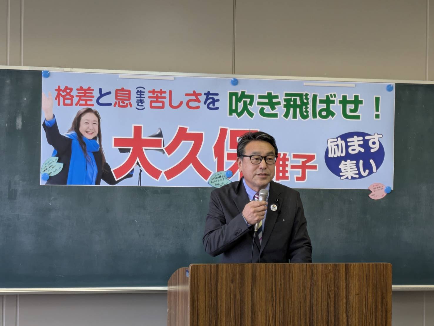 大久保雅子さんを囲む会にご参加の皆さん、宇部市選挙区で、唯一、大久保雅子さん推薦を表明している県議の藤本かずのりです。