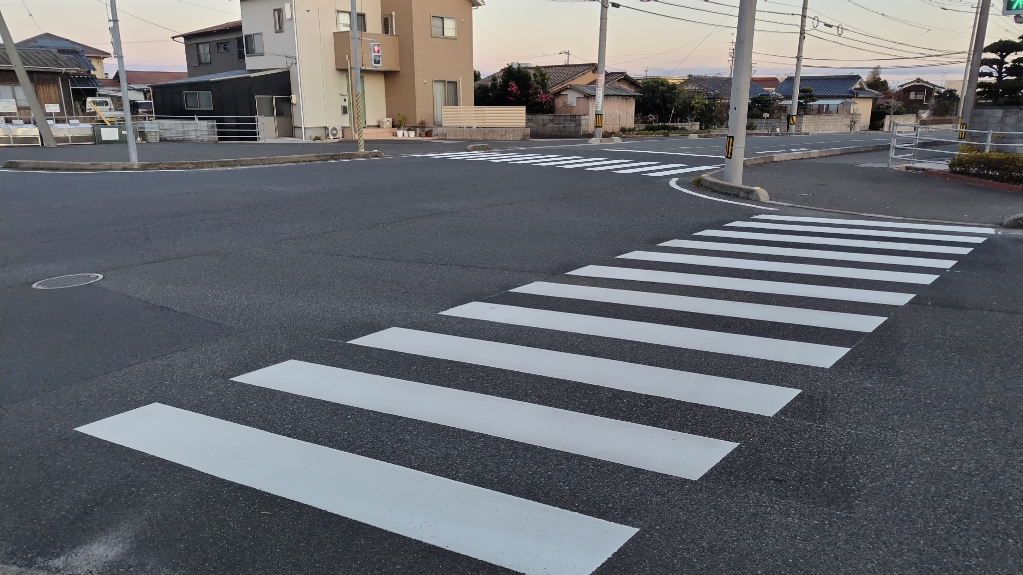 恩田ふれあいセンター前の交差点 横断歩道の白線引き直し工事が完了しました。