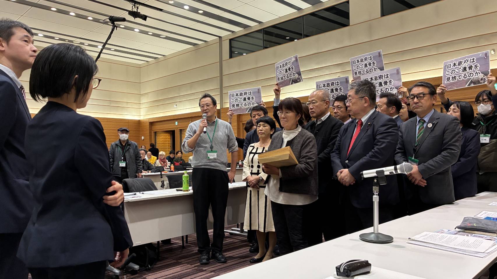 「戦時中の1942年2月に旧長生炭鉱で朝鮮半島から強制動員された136人を含む183人が犠牲となった水没事故について、犠牲者の遺骨収容などを進めている『長生炭鉱の水非常を歴史に刻む会』は23日、国会内で厚生労働省、外務省、警察庁に要請を行いました。早急な遺骨のDNA鑑定と遺族への返還、来年2月に『刻む会』が実施する遺骨収容プロジェクトへの支援、追悼式への出席などを改めて求めました。日本共産党の小池書記局長ら各党の国会議員が同席しました。外務省と警察庁は消極的ながらも『遺骨返還の早期実現に向けて韓国政府とも連携を進めている』と回答。一方、厚労省は『長生炭鉱は、調査の安全性が確認できていない』など以前と変わらない回答を繰り返しました。こうした無責任な姿勢には、出席者から批判が相次ぎました。要請後の記者会見で、『刻む会』の井上洋子共同代表は『来年1月には日韓首脳会談があり、2月の遺骨収容プロジェクトでは多くの遺骨が戻ってくる。日本政府もどこかで政治決着を迫られるはずだ』と述べ、改めて市民の力で政府を動かす決意を訴えました。小池氏は『市民団体の努力で遺骨が発見されたことが、ここまで事態を動かした。この努力に政治がこたえなければいけない。いまこそ政府の後ろ向きの姿勢を変えさせるときだ』と訴えました。要請には小池氏のほか、日本共産党から田村貴昭衆議院議員、白川容子参院議員、藤本一規県議と、立憲民主党、社民党の国会議員が参加しました。」