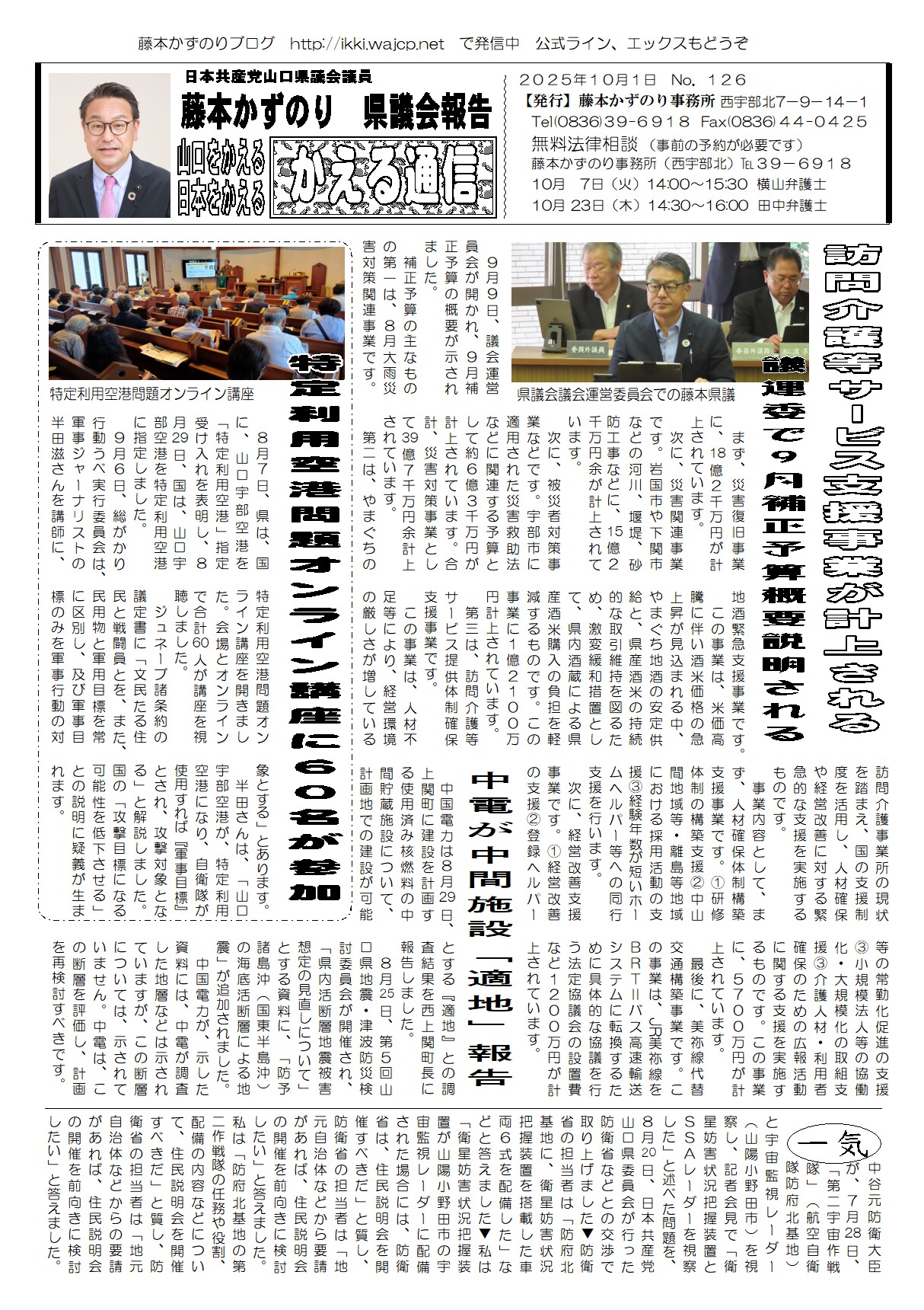 藤本かずのり県議会報告(かえる通信)2025年10月1日 No.126