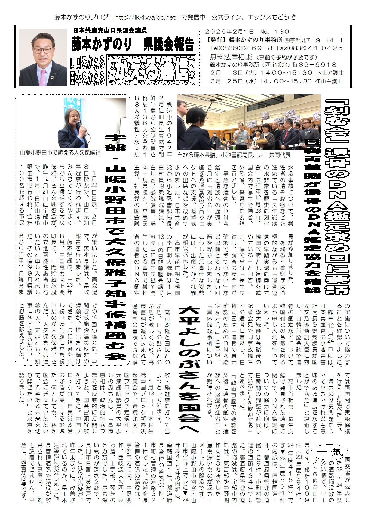 また、2月7日には、長生炭鉱水没事故84周年犠牲者追悼集会が行われます。韓国政府からの参加はあると思われます。日本政府の関係者が参加するよう要請します。ならば、県知事や宇部市長など、自治体幹部の参加も要請したいと思います。